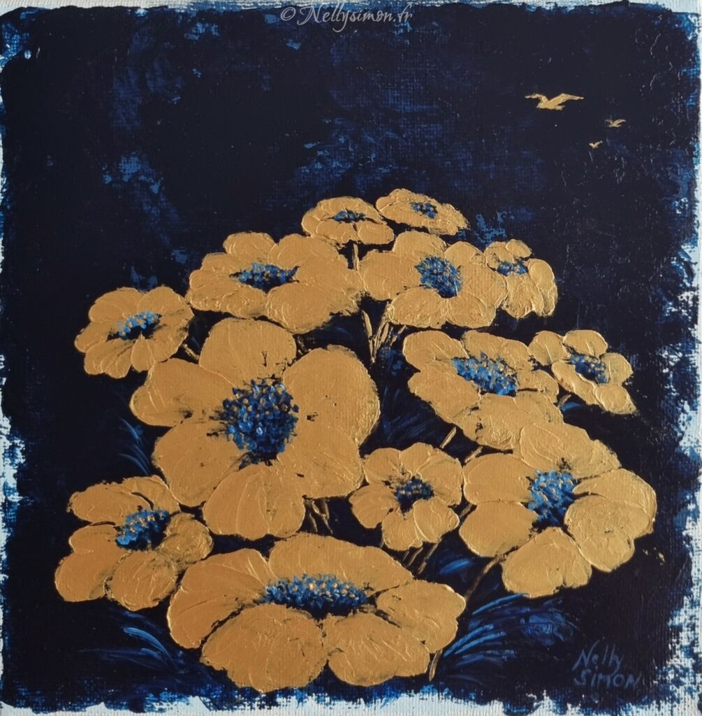 iris dorés-acrylique et enduit-25 x 30 cm-août 23